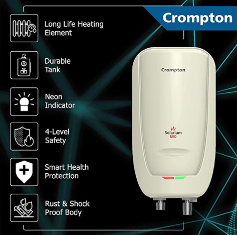 Crompton Solarium Neo 3-Litre, 3KW Instant Water Heater/Geyser with Rust Free ABS Body (Ivory)